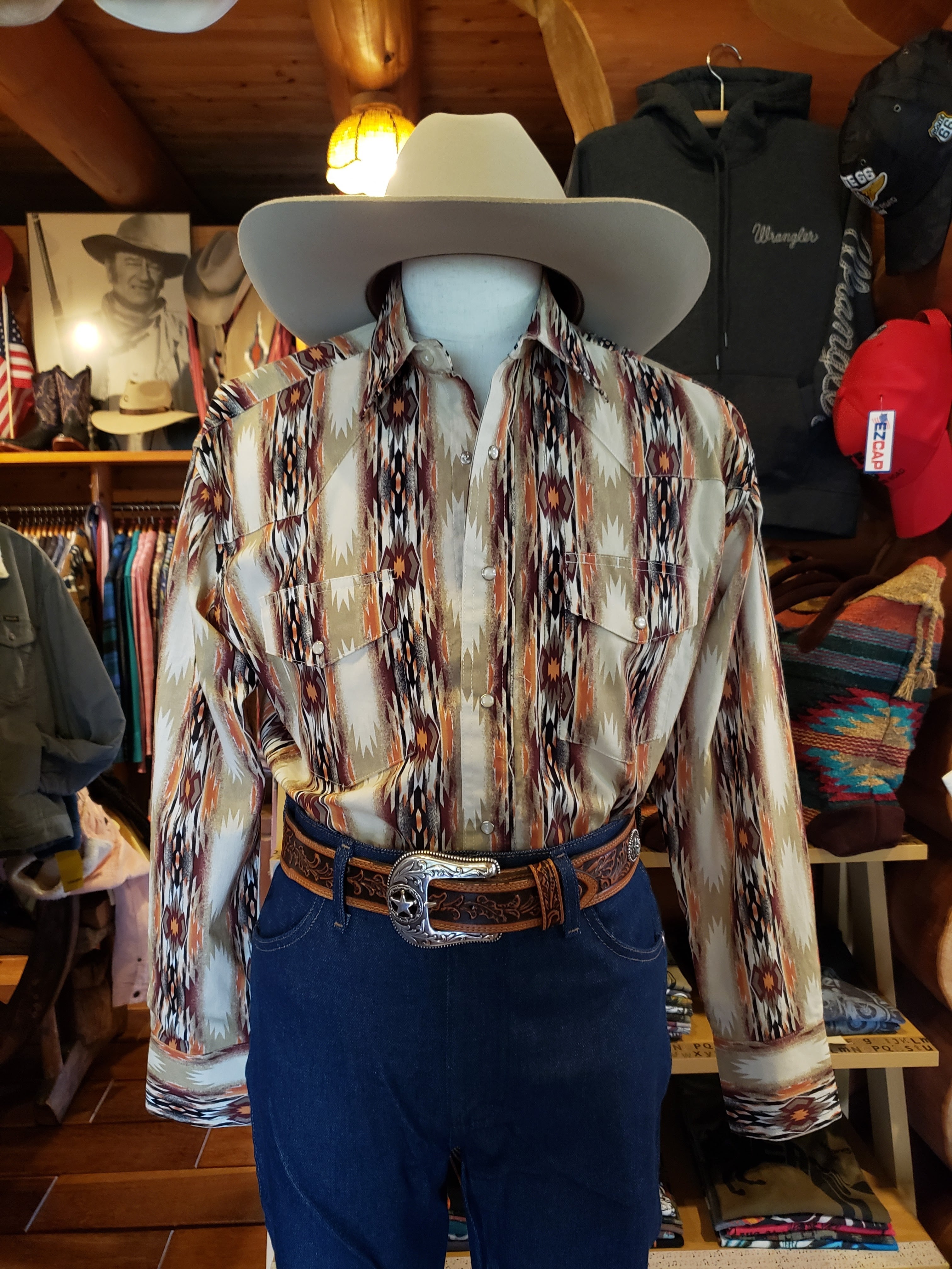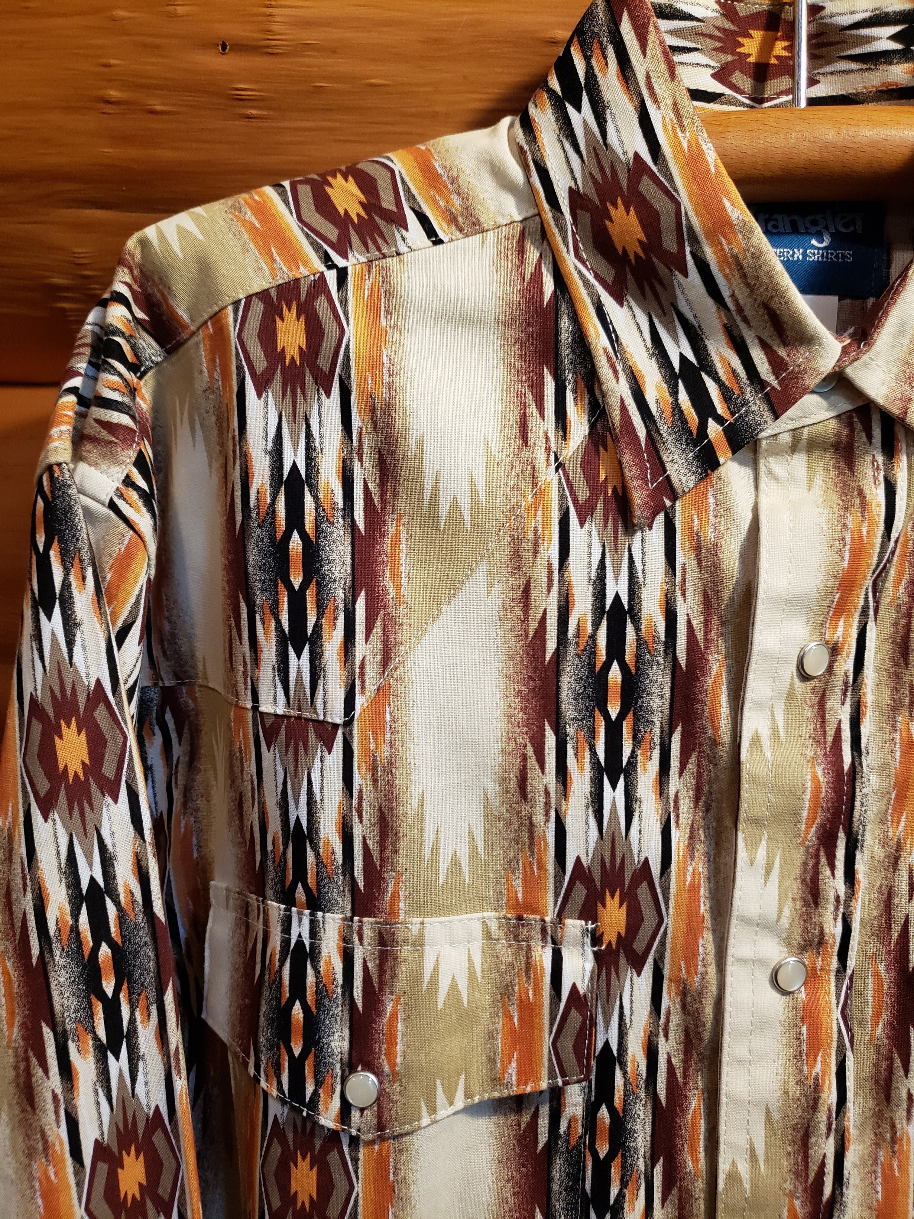 USA Wrangler ラングラー メンズ ネイティブ柄 ウエスタンシャツ ベージュ 黒 茶 オレンジ